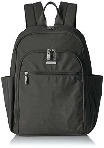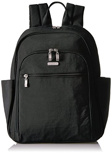Studio : Baggallini Publisher : Baggallini Binding : Personal Computers Product Description With easily adjustable straps, the essential laptop backpack with rfid adjusts for you and offers all the stylish functionality in rain-resistant ultra-lightweight nylon. With a padded laptop pocket and removable rfid wristlet, this pack is designed for all your everyday journeys to work, home, and anywhere the day takes you. 0