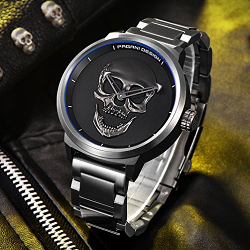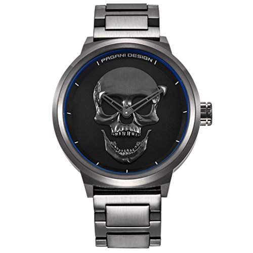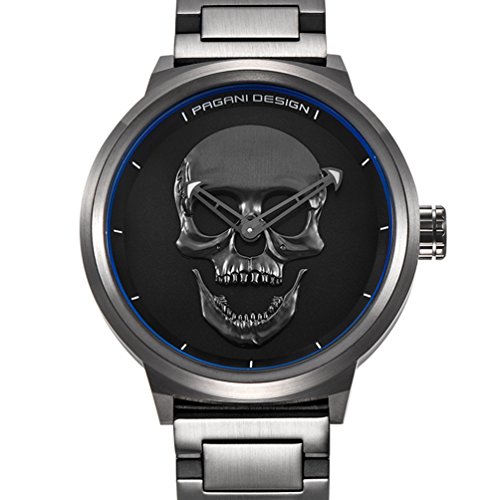 -. Feature : SPECIAL DESIGN: Unique Classic Punk 3D Skull Personality Design. PAGANI DESIGN / HIGH QUALITY: 100% Brand New with Excellent Workmanship, Precise Quartz Movement. / FASHION ACCESSORY: Attractive Vintage Dial, make your cool, different from others. / PERFECT CHOICE: Come with good quality Gift Box, perfect Gift for your lover and family or yourself. / If you have any problem, please feel free to contact us, we will try our best to help you.