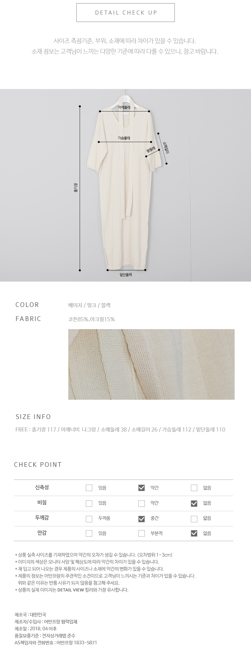 코튼사에 쾌적하고 부담없는 소재로살짝 들어간 골지 짜임이 전체적으로슬림하고 날씬해보이는 원피스랍니다과하지 않은 브이넥으로 목선이예쁘게 드러나고 부드럽게 이어지는어깨선과 전체적으로 살짝 루즈한 핏이편안하면서도 차려입은듯고급스러움이 묻어난답니다간절기부터 초여름까지데일리룩부터 하객룩까지 갖춰입어야는자리도 커버해주는 원피스랍니다색상은 베이지, 핑크, 블랙사이즈는 FREE 44~77▼ 관련상품 : 소매배색 린넨 자켓