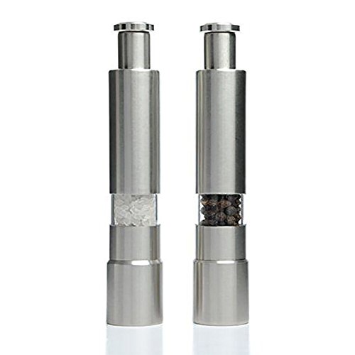 Bringsine Salt and Pepper Grinder Set. Premium Stainless Steel Salt and Pepper Mills Shakers Works Great With Peppercorns, Sea Salt, Himalayan Salt, Spices & Table Seasoning Set of 2