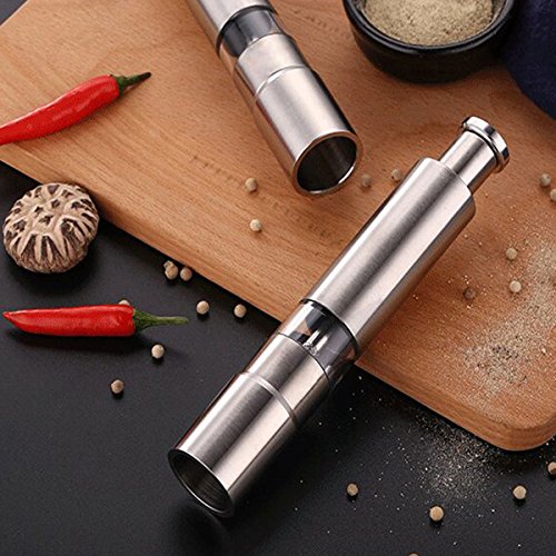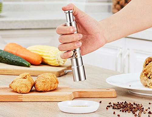 TOP QUALITY MATERIAL: These mini salt and pepper mills require no batteries and are made with a stainless steel grinding mechanism for a lifetime of use.