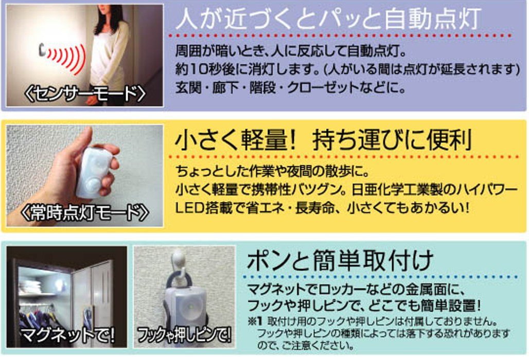 ● Easy installation with a magnet and hook with Pong! It also becomes a handy light LED sensor light