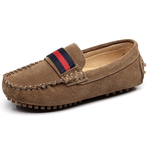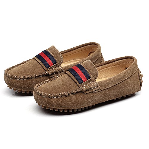 Shenn Boys Girls Cute Strap Slip-On Comfortable Dress Suede Leather Loafer Flats