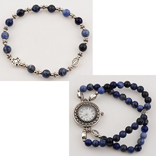 -. Title : McVan 6mm Blue Lapis Bead Rosary Watch Set, Comes in Box