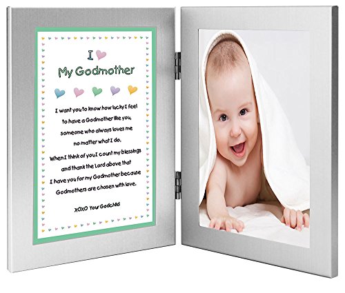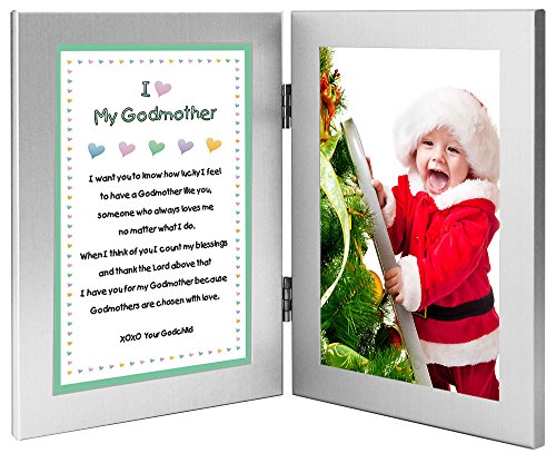 Baptism Gift for Godmother - Sweet Godchild Poem From Godson or Goddaughter in Double Frame - Add 4x6 Photo