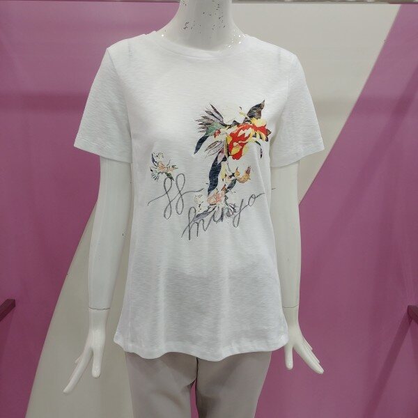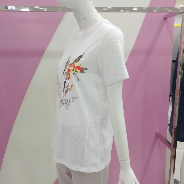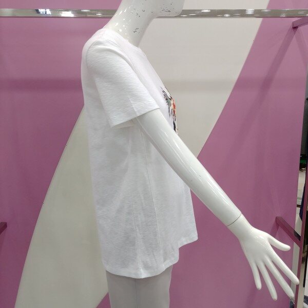 면 폴리 소재로 스판끼가 있어 편하게 착용가능하며, 프린트로 포인트를 준 티셔츠.깔끔한 스타일로 멋스럽게 연출 가능한 티셔츠.정사이즈 구매.