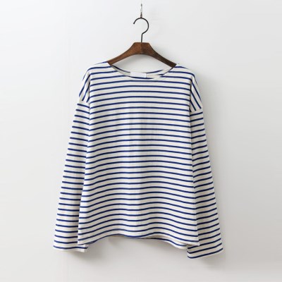 시크한 스트라이프 패턴의 여성 긴팔 티셔츠.