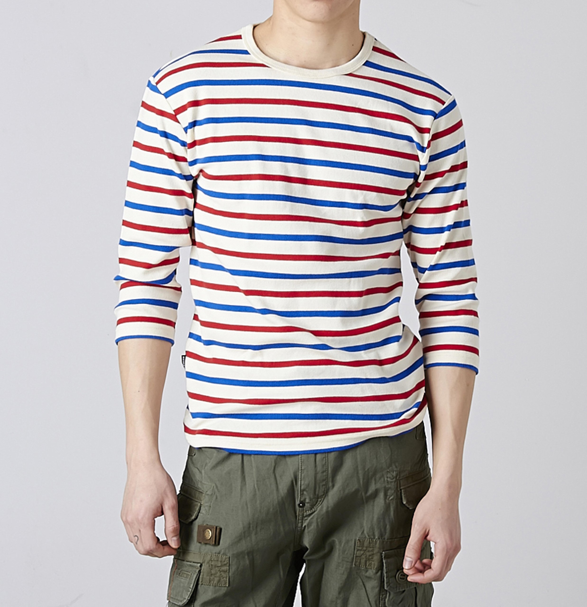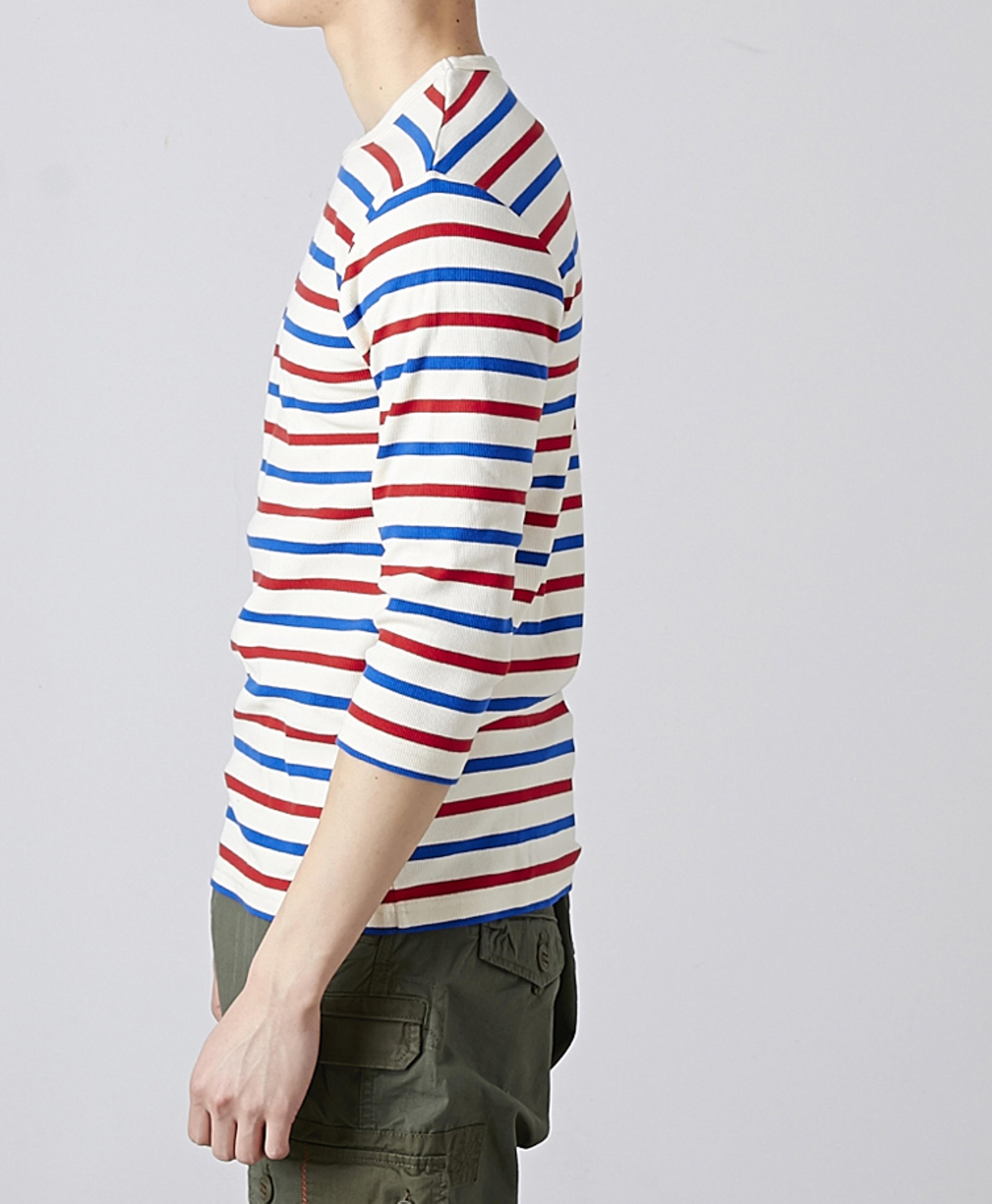 DAILY 3/4 SLEEVE CREW NECK BORDER TEE