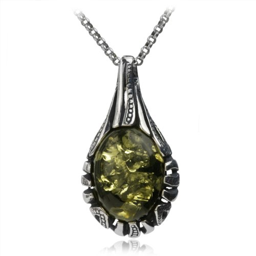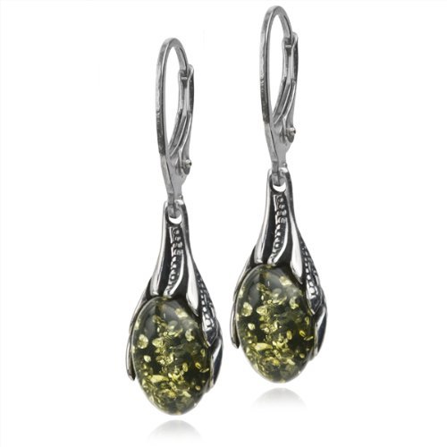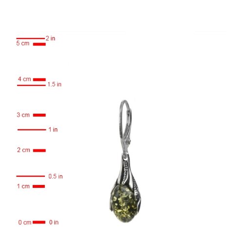 -. Title : Sterling Silver Green Amber Drop Necklace 18 Inches Leverback Oval Earrings Set
