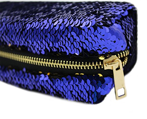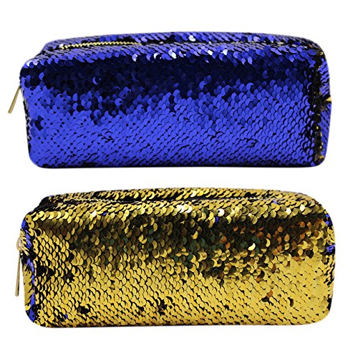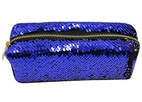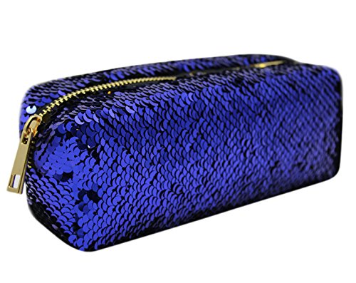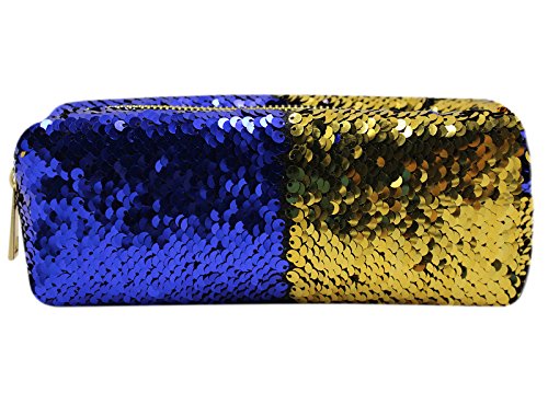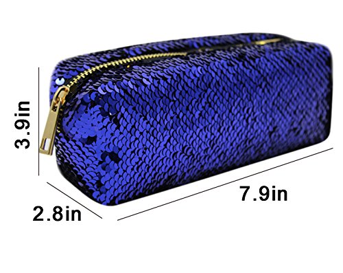 Aimeio Reversible Sequins Pencil Case Holder Double Color Pencil Bag Makeup Pouch,Navy Blue+Gold