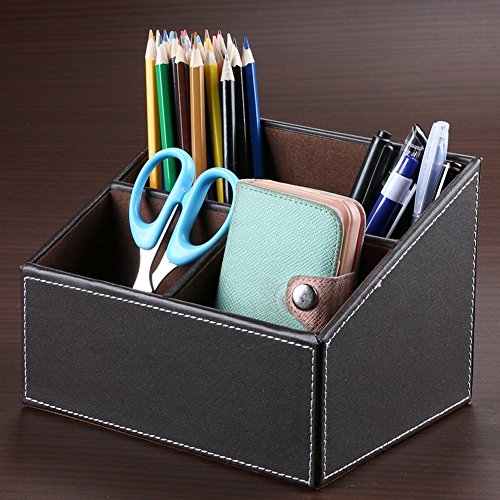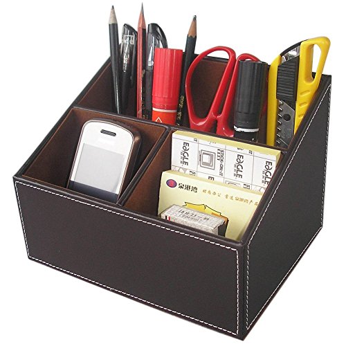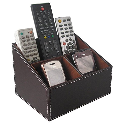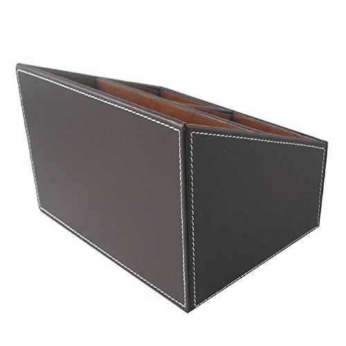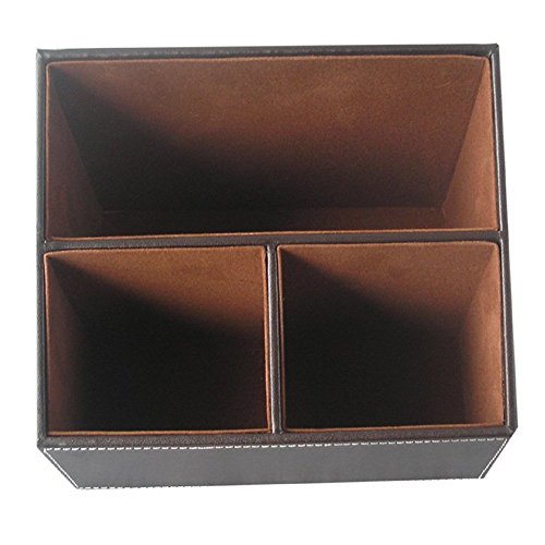 KINGFOM™ 3 Compartment PU Leather Desk Remote Controller Holder Organizer; Home Sundries Storage Box; TV Guide/Mail/CD Organizer/Caddy/Holder with Free Cable Organizer (brown)
