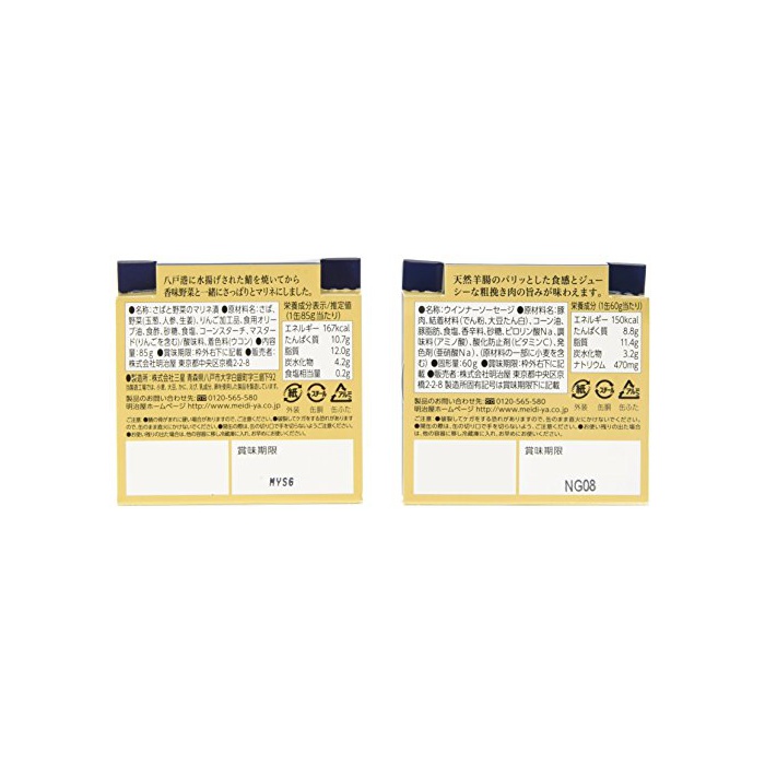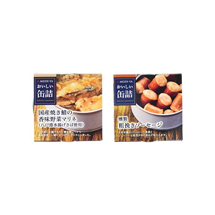 원본상품명: 明治屋 おいしい缶詰 ?産?き鯖の香味野菜マリネ 85g/燻製粗挽きソ?セ?ジ 60g