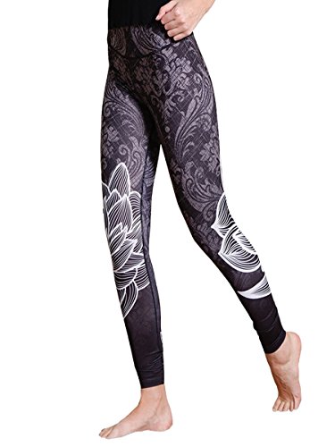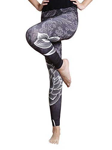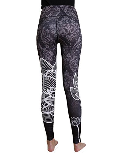 -. Title : Yomsong Women Lotus Grey Black P.R.Int Flowers Sports Gym Leggings