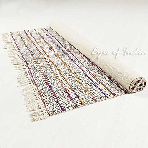 -. Brand : Eyes of India -. Color : Multi -. Feature : PLEASE NOTE: This item is made exclusively by EYES OF INDIA and we do not resell our products. If the "Ships from and Sold By" above says any seller besides "Eyes of India_” then please click on “Offers” to select Eyes of India as the seller. Otherwise the item will be different from the image and lower quality. / Color: Multicolor / Size: / Material: Cotton and Yarn / Note: -. Label : Eyes of India -. Manufacturer : Eyes of India -. ProductGroup : Furniture -. ProductTypeName : HOME_FURNITURE_AND_DECOR -. Publisher : Eyes of India -. Studio : Eyes of India -. Title : EYES OF INDIA - COTTON BLOCK P.R.INT AREA ACCENT OVERDYED DHURRIE RUG HAND WOVEN FLAT WEAVE