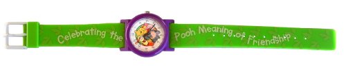 -. Binding : Watch -. Brand : RICH -. Department : unisex-child -. Feature : Winnie The Pooh "...... is a collectible kids size watch with a green plastic strap and white plastic buckle. / The watch has a purple plastic case with a quartz movement by Citizen. / A colorful Pooh and friends image is shown on the dial and the green band is printed in white with the words..... "Celebrating the Pooh meaning of friendship". / The back of the watch case is engraved with the Pooh logo and "Celebrating the Pooh meaning of friendship".. -. Label : Rich Company -. Manufacturer : Rich Company -. Model : 4331780662 -. MPN : 4331780662 -. PackageQuantity : 1 -. PartNumber : 4331780662 -. ProductGroup : Watch -. ProductTypeName : WATCH -. Publisher : Rich Company -. Studio : Rich Company -. Title : Collectible Winnie the Pooh Kid's Quartz Watch with Plastic Case and Strap "Celebrating the Pooh Meaning of Friendship"