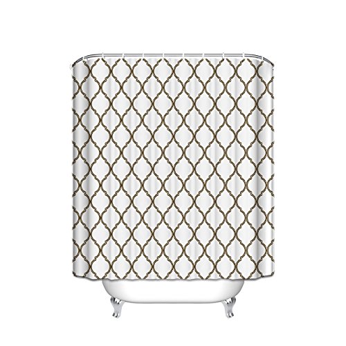 SUN-Shine Geometric Diamond Golden Line Pattern Mildew Resistant Waterproof Bathroom Fabric Shower Curtain with Hooks 72x84IN
