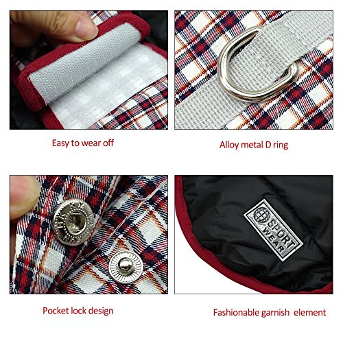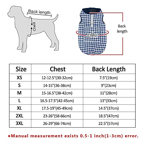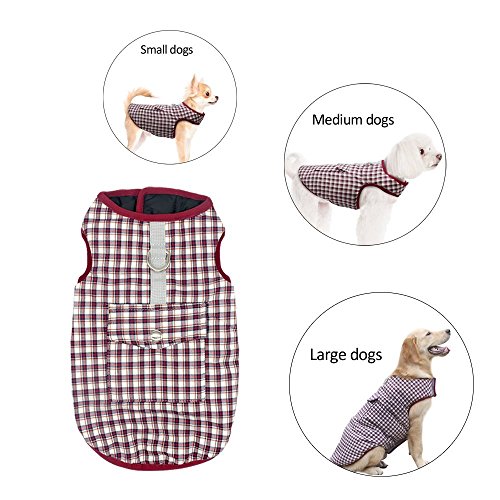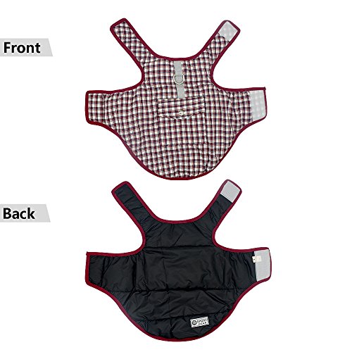 -. Feature : REVERSIBLE WATERPROOF PLAID DOG COAT - Warm dog vest winter coat pet apparel clothes,The other black side of the garment is waterproof, windproof and snowproof,with reflective identification,filler between both sides is polyester fiber to ensure your dog is warm and comfortable in cold winter / CONVENIENT HOOk&LOOP WITH LEASH HOLE - Removable Velcro Designed-Easy to put on and take off to adjust loose and tight.A hole down the neck is prepared for passing through the dog leash which is very convenient to connect traction on the rope when walking / SUITABLE DOG BREEDS FROM XS TO 3XL - Waterproof Reversible British Style Plaid Dog Vest Winter Coat make your dog feel freedom and lifeful.Suit for Large medium small dogs such as golden retriever, labrador, rough collie,poodle,teddy, schnauzer, alaskan malamute etc. / PRACTICAL BACK POCKET & 2 COLORS & 7 SIZES TO FIT - Simple pocket,travel can be installed dog food and small toys.7 SIZES are avaliable from XS to XXXL,which can accompany most of dog breeds growth,PLEASE MAKE SURE YOUR BABY'S SIZE BEFORE ORDER. / BEIRUI 100% GUARANTEED QUALITY - We guarantee your satisfaction,if you are not satisfied with the goods you received,please contact us in first time,we offer the Replacement or Refund your purchase in time.