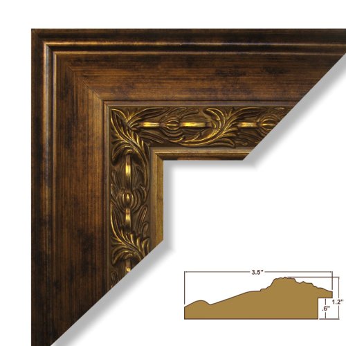 -. Title : 9x12 Picture / Poster Frame, Ornate Wood Grain Finish, 3.65" Wide, Antique Gold and Bronze (9146)