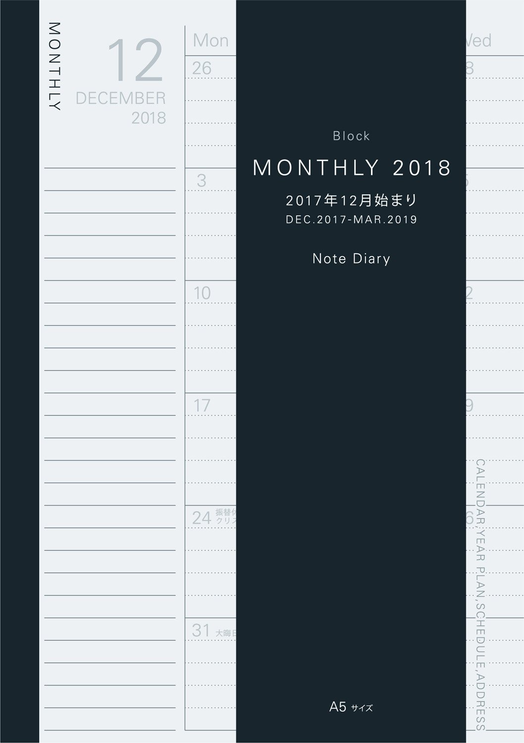 Product name: Ray Meitoi notebook beginning in December 2018 Ford diary note refill monthly A5 RFDR 1873