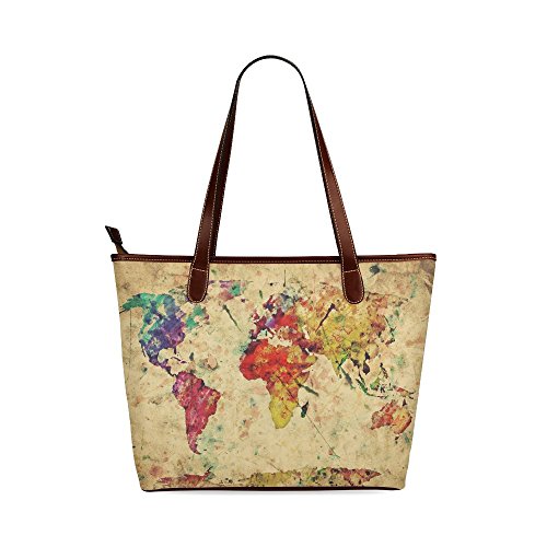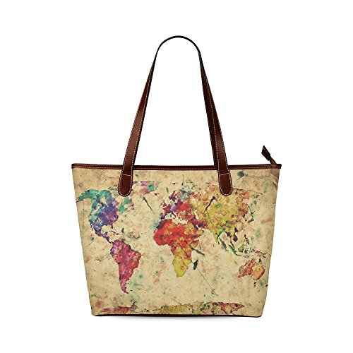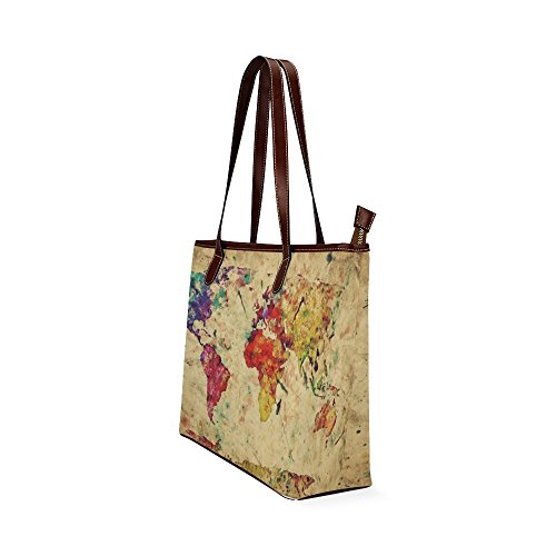 -. Title : Retro style Old Map Fashion Designed Waterproof Fabric Shoulder Tote Bag(44.5cm x 30.5cm x 12.7cm)Two-sided Printing