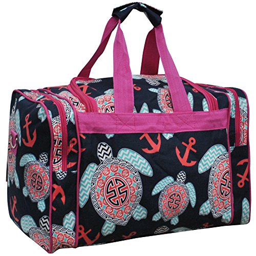 Product Description Perfect size for carrying the essentials with Dimensions of 17"(L) x 9"(H) x 11"(W). Front Zipper Pocket(s) for anything that needs to be keept at hand. The Rubber Feet on the Bottom Help keep it dry if floor is wet. Double Zipper Closure and 2 side zipper compartment. Carrying straps snap together with Velcro for easy carrying. 0