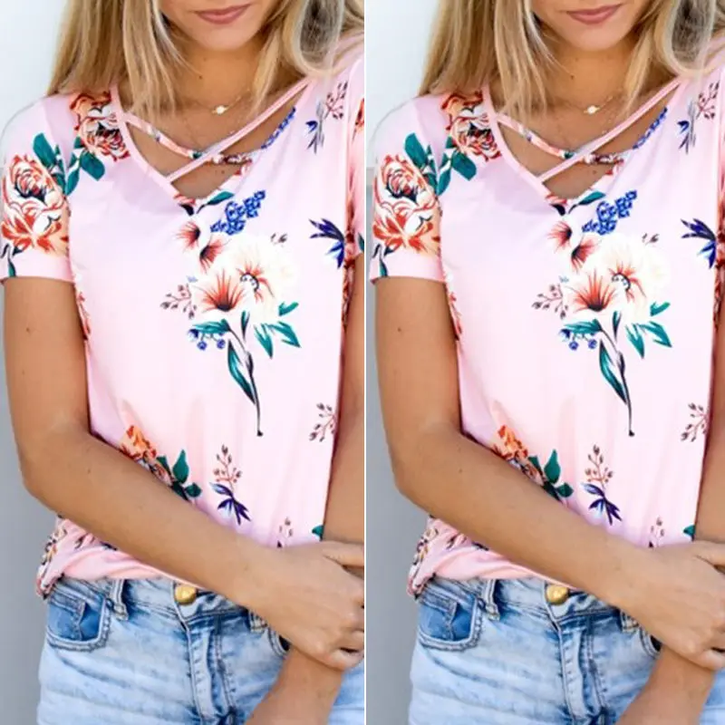 Model Number:Womens Floral Blouse Summer Short Sleeve