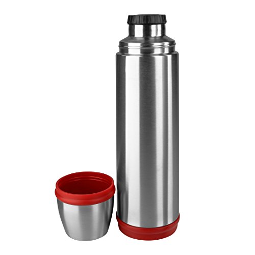 Emsa Thermos Flask "Captain" 33.81 fl. oz. of Stainless Steel, Silver/Red