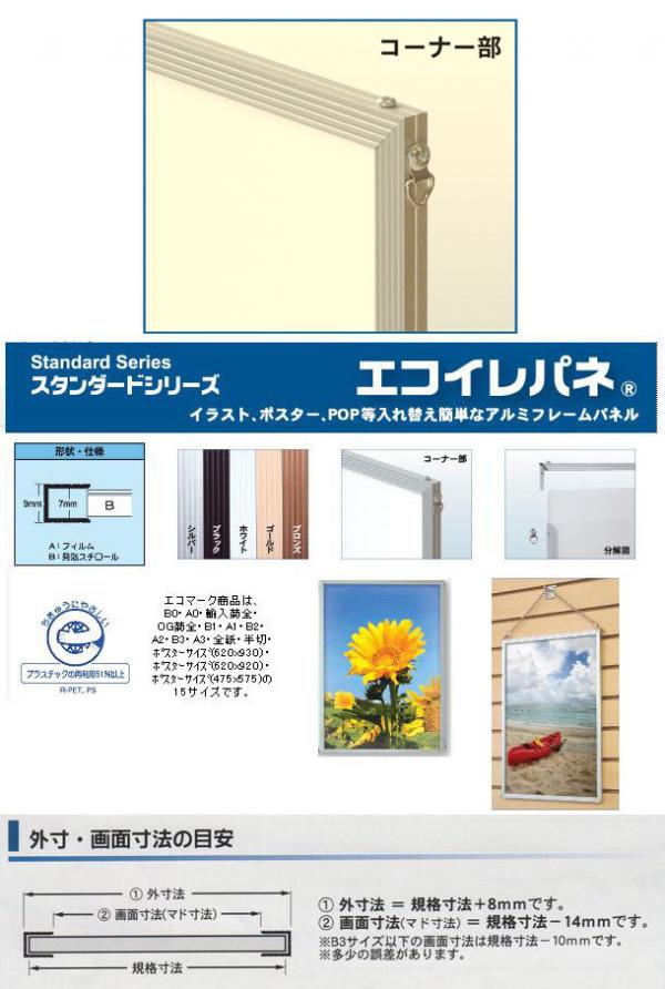 ロングラン、アルミ製入れ替えパネルの定番製品です。製造国:日本 商品サイズ:680×990mm 重量:約1090g 素材・材質:アルミ、PETフィルム、発泡スチロール 仕様/外寸法:規格寸法+8mm、画面寸法(マド寸法):規格寸法-14mm 付属品:吊り金具、吊りひも ※サプライヤー直送品 ご注文後2~3営業日後の出荷となります【商品名】エコイレパネ 輸入菊全 ST-P1-BN ブロンズ
