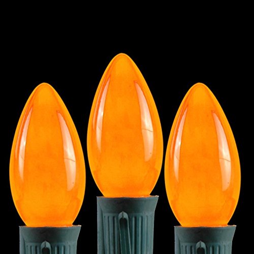 Novelty Lights 25 Pack C9 Ceramic Outdoor String Light Christmas Replacement Bulbs, Orange, E17/C9 Base, 7 Watt