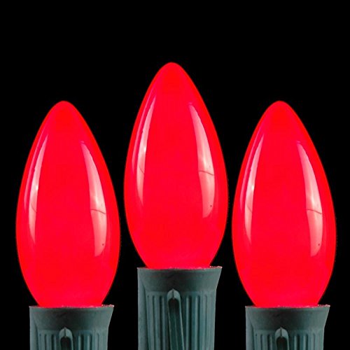 Novelty Lights 25 Pack C9 Ceramic Outdoor String Light Christmas Replacement Bulbs, Red, E17/C9 Base, 7 Watt