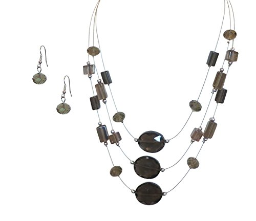 -. Title : The Hex by Laraso Triple Strand Smoky Gray Necklace Earring Jewelry Set