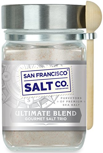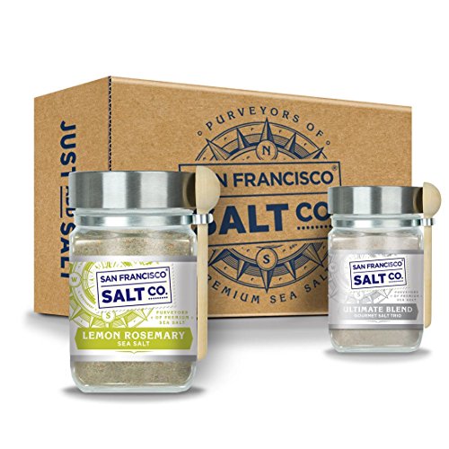 -. Feature : EVERYDAY BASICS GIFT SET OF 2 CHEF JARS: 2 8oz Chef's Jars with wooden scoops: Lemon Rosemary Sea Salt and Ultimate Blend Gourmet Salt Trio / 100% KOSHER GOURMET SALT: Our salt is Kosher Certified, Non-GMO, and do not contain any MSG, Soy, Gluten, Dairy, or anti-caking agents. We package in our U.S.A, GMP certified packaging facility that is 3rd party audited, by SCS Global. / YOUR FAVORITE GOURMET SALTS WITHIN AN ARM'S REACH: Glass Chef's Jar with wooden scoop. Each jar is filled with a fine grain salt - ready to be integrated into your favorite recipes or sP.R.Inkled right on top on your entrées to add amazing flavor / PACK OF 2 FOR GREAT VALUE: This gourmet duo is a standard in any home. These all-natural salts can be used in so many ways on practically any dish. Our Top Shelf Gift Set is the perfect gift for your friends and family, no matter the occasion. Packaged in beautiful jars and served with a wooden spoon, this chef jar duo is the best gift for the season. / 100% MONEY BACK GUARANTEE: The San Francisco Salt Company is so confident that you will be happy with the quality of our products that we stand behind every single item that we sell. If you are not 100% satisfied with your purchase you can return the product for a full refund.