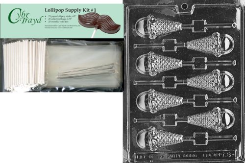 Cybrtrayd 45StK25S-K008 Ice Cream Cone Lolly Kids Chocolate Candy Mold with Lollipop Supply Bundle, Includes 25 Lollipop Sticks, 25 Cello Bags, 25 Silver Twist Ties, Instructions