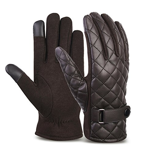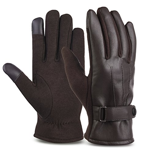 VBIGER 맨즈 레더 글로브 스마트폰대응 뒤기 모동방한 가죽 장갑 보온 따뜻하 남성용 오토바이구 드라이브(브라운2)