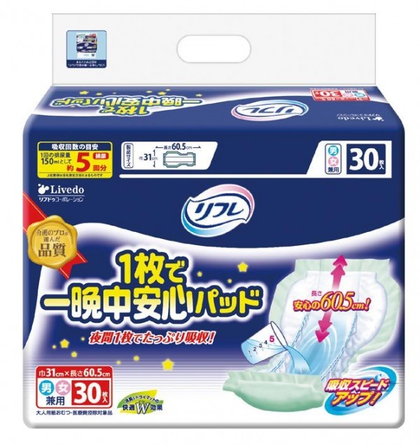 | 仕様 | 吸収回数の目安:約5回分(1回の排尿量150mlとして) 男女兼用 |