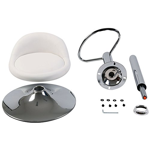 -. Feature : Set up Dimension: 21.5" W x 18.5" D x 27.6"-35.8"H; Seat width: 11.8"; Seat depth: 12.6"; Seat height: 24"-30"; Seat back height: 3.5"; Chrome base diameter:15.2" / Round seat pad & fan-shaped mini backrest design, more comfortable and beautiful than other shape stool. 3 inches thick pad. Polyurethane faux leather seat upholstery, water-proof & oil proof, easy to clean, makes the chair become more durable. / Sleek chrome metal feet rest, nice shape, suitable size, which meets ergonomics, providing a best place for your feet when seating. Ø 15.2 inches sleek chrome metal base, makes the stool stand sturdy . / Meet BIFMA standard cylinder, much safer than others. ISO 9001: 2000 standard certified manufacturer. BIFMA sponsors the development of safety and performance standards, provides industry statistics and forecasts, advocates for regulatory conditions that foster value and innovation, and serves as a forum for member cooperation and collaboration. / Durable rubber ring bottom design, makes the base become more stable, and prevents your luxurious wood floor from scratching. Max weight capacity: 330lbs