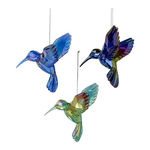 Kurt Adler Shiny Acrylic Hummingbird Ornaments, Set of 3, Assorted)