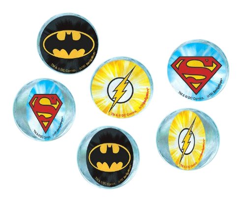 -. Title : Adventure Filled Justice League Birthday Party Bounce Ball Favours, Multi Colored, Rubber, 45 mm, 6-Piece