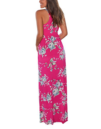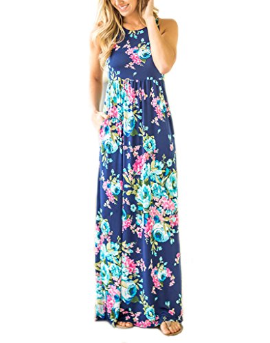 Vemvan Women's Floral Print Round Neck Sleeveless Long Maxi Casual Dress