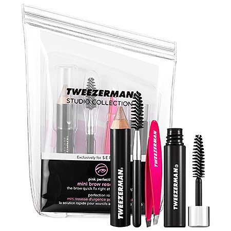 They may be miniature, but these pint-sized tools are all you need to perfect your brows in a pinch. The travel-friendly set includes four tools for complete brow upkeep: The Mini Slant Tweezer, a small wonder featuring the same stellar quality and precision as the award-winning, full-size Slant. The clear-gel formula of the Browmousse coaxes a beautifully shaped brow to stay in place, all-day long. The Mini Eyenhance Highlighter Pencil highlights the area underneath the brow for a true, brow-raising effect with a universally flattering, champagne hue. The Mini Brow Shaping Brush is specially designed with thick, nylon bristles to shape brows and keep them clean, healthy, and flake-free.