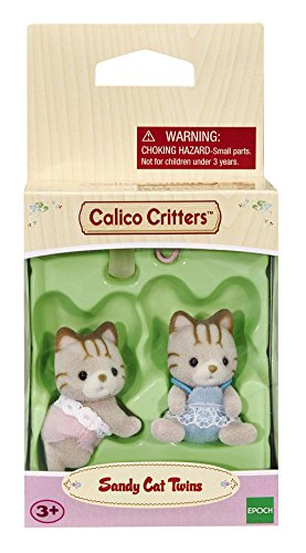 -. Binding : Toy -. Brand : Calico Critters -. EAN : 0020373214071 -. Feature : New for 2015!! / These wonderful additions to the Sandy Cat family have heads that turn / Mix and match to collect with other Calico Critters figures and accessories / Twins measure approximately 1 1/4" tall / For ages 3 and up -. IsAdultProduct : 0 -. ItemPartNumber : CC1407 -. Label : International Playthings -. Manufacturer : International Playthings -. Model : CC1407 -. MPN : CC1407 -. PackageQuantity : 1 -. PartNumber : CC1407 -. ProductGroup : Toy -. ProductTypeName : TOYS_AND_GAMES -. Publisher : International Playthings -. Studio : International Playthings -. Title : Calico Critters Sandy Cat Twins Doll -. UPC : 659213102034 -. Warranty : No Warranty