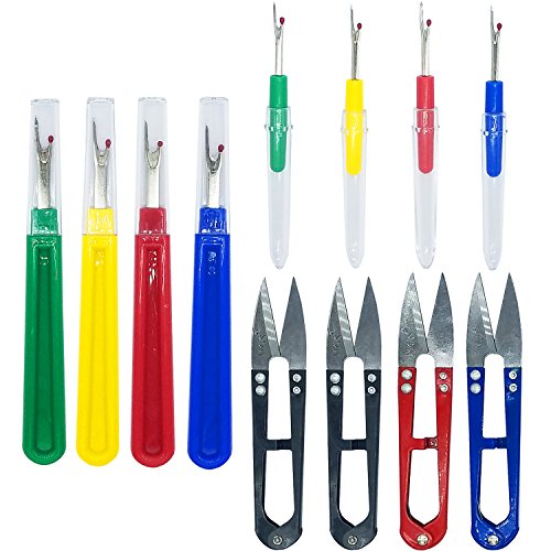 Ldoux 8 Pieces Seam Ripper Set, 4 Big and 4 Small Colorful Handy Stitch Thread Unpicker Ripper Tools for Opening Seams and Hems, 4PCS Clippers Sewing Trimming Scissors Randomly Color