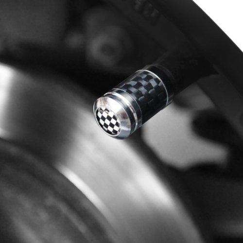 GoBadges WA11 Chrome Carbon Fiber Valve Stem Cap with Checker Button