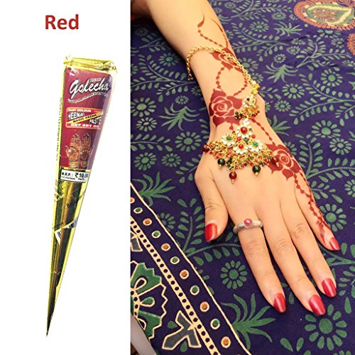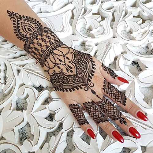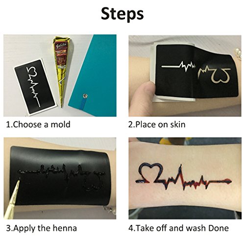 ❤LASTING AND WATERPROOF: Different color henna has different keep time. The brown henna pattern can last in 7-15 days; the black can last in 3-5 days;the red can last in 3-4 days. After it dry, it can be waterproof.