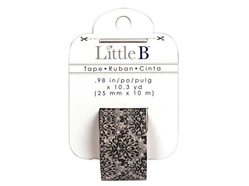 Little B decorative paper tape can be used on crafting projects, scrapbook layouts, gift wrapping and more. White and black Damask decorative tape features a white background with a black Damask pattern. Our tape comes in a handy dispenser that has a tape cutter on the top. Measures approximately 0.98-Inch-by-10.3-Yards. Adhesive may mark some surfaces, test before using.Feature