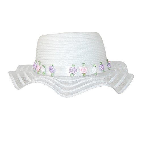 CTM Girls' Dress 2.5 Inch Wave Brim Holiday Bonnet Hat, White