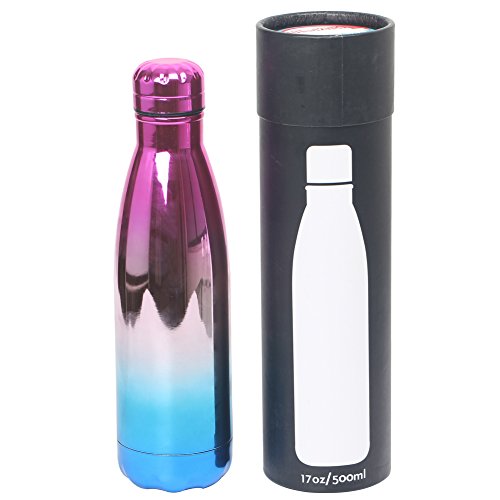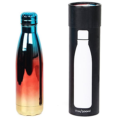 -. Feature : Reusable Stainless Steel rainbow water bottles are made of food grade 18/8 stainless steel, BPA-free, leak proof and spill proof / 500 ML/17oz Rainbow water bottle, Proper capacity and Lightweight design, perfect for your gym bag, car, bicycle and backpack with convenient when you enjoy your travel, yoga, Hiking Camping and other outdoor sports / Insulated Double walled vacuum insulation design with a vacuum-seal lid, so the bottle can keep the drink cold for 24 hour and hot for up to 12 hour / Fashionable Colors are Suitable for Men/women, Kids/teens/Baby, and Match Well With any dress style.Best Gift for Your Family or Friends on Anniversary, Birthday, Festival, Halloween, Christmas, Thanksgiving Day / Attractive Color Rainbow Water Bottle With Gradually Changes Color is Plated with UV Nanotechnology, The Color Never Fall off.Its Attractive Color Make you Unique.