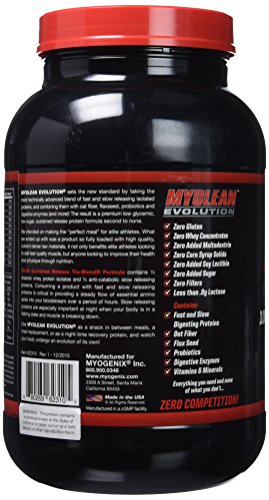 ReleaseDate : 2016-04-27 Studio : Myogenix Publisher : Myogenix Binding : Health and Beauty Product Description Myogenix evolution's cookies n cream flavored meal replacement powder contains a blend of whey isolate, egg albumin and casein. Formulated to increase lean muscle mass and improve your health, evolution has no whey concentrates, lactose, added sugars, or fillers. It works fast with slow digesting proteins and includes important vitamins and minerals. 0