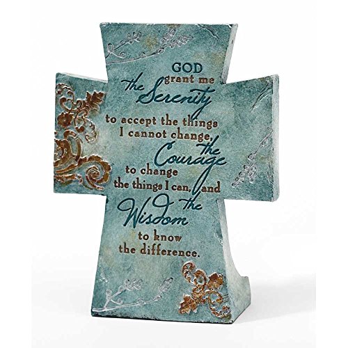 Serenity Prayer Aqua Filigree 4 x 6 Resin Stone Table Top Cross Decoration