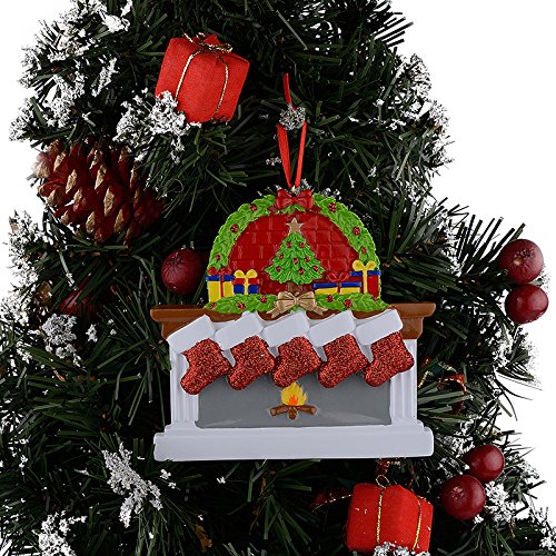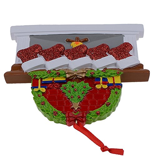 Personalized Fireplace Stockings Family Ornaments of 5 Christmas Gifts